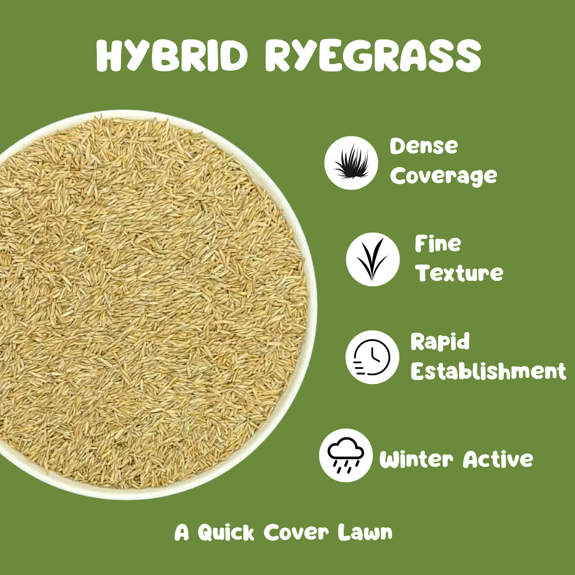 Sow in autumn for rapid winter cover. It germinates quickly and stays green through cooler months, ideal for seasonal overseeding.